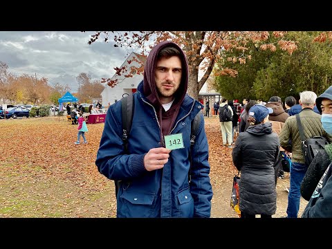 Стою в очереди за бесплатной едой в Америке. Показываю, что нам дали. Неожиданный подарок в США.